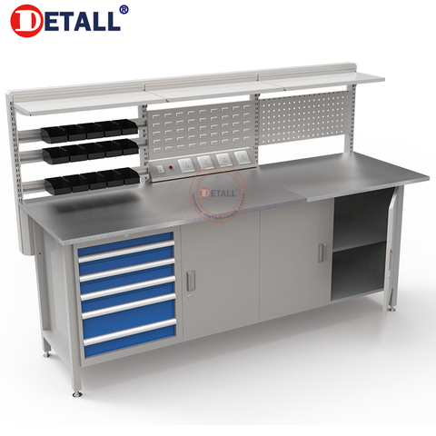 Detall Bàn Làm Việc ESD Kim Loại Nhiệm Vụ Nặng Nề nhà để xe bàn làm việc với công cụ băng ghế dự bị phó
